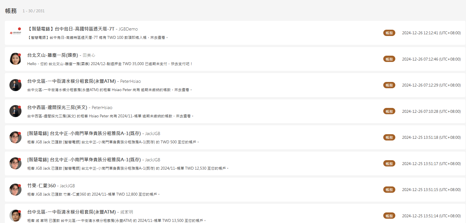 JGB 的帳務功能實現全自動化處理,從帳單生成到付款確認,無需人工干預,讓帳務管理變得更高效、更精準。