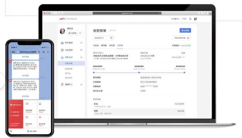JGB Smart Property 是一個租房雲端管理平台,我們提供全方位的房管功能,從招租簽約、帳務數據、修繕管理到智能設備串接。運用地產科技平台,創造您的租賃事業優勢!>>> 開始您的JGB一站式的雲端管房系統